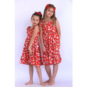 VESTIDO CLASSICO FLORAL, COM ALCAS DE LACO CHANEL, SAIA LEVEMENTE RODADA. TECIDO 100% ALGODAO. MODELAGEM: VESTE A IDADE CERTA. ( EX: CRIANCA DE 8 ANOS VESTE TAMANHO 8 ANOS) .
